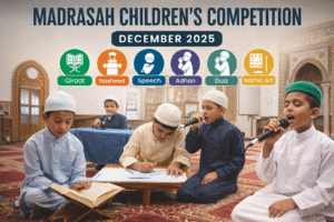 We are extremely proud of all the children who participated in the December 2025 competition. Their preparation, enthusiasm, and commitment were evident throughout the event. Such competitions play a vital role in strengthening Islamic identity, building confidence, and encouraging children to express their talents in a faith-centered environment.