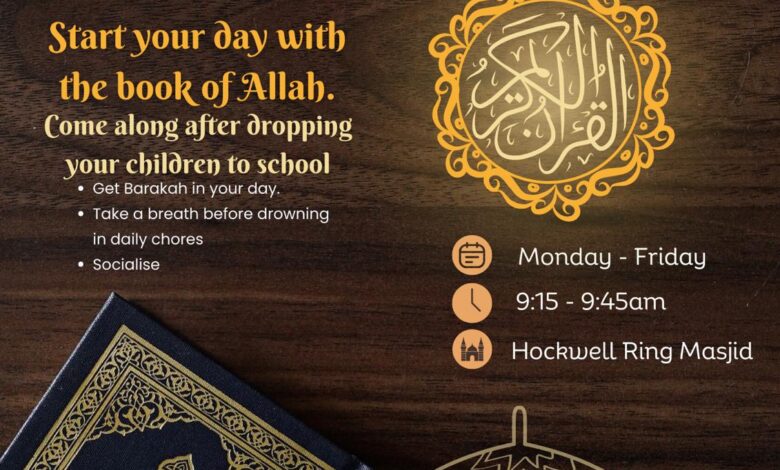 Whether you are new to the Qur’an or already attending classes, all sisters are welcome. Come and benefit from this short but spiritually enriching daily session.
